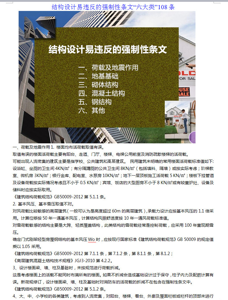 結(jié)構(gòu)設(shè)計(jì)易違反的強(qiáng)制性條文“六大類”108條