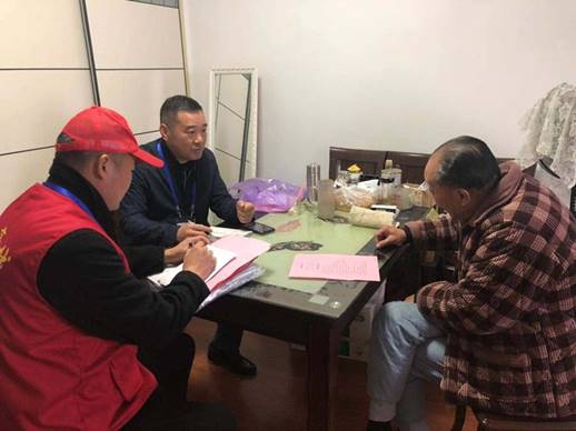志愿者在天逸華府杏園南苑居民家進(jìn)行宣傳走訪