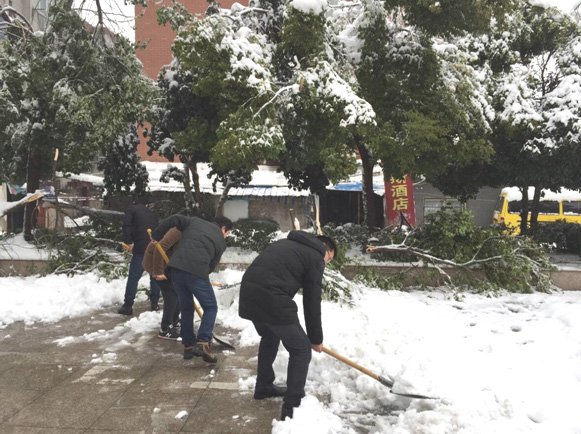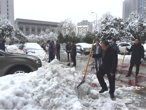 全院職工齊努力,清掃積雪保平安