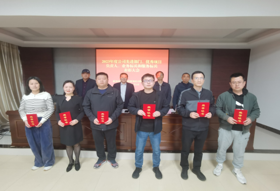 根據(jù)會議議程,公司董事、副總經(jīng)理王士才同志宣讀了《關(guān)于表彰2023年度公司先進部門、優(yōu)秀項目負責(zé)人、業(yè)務(wù)標(biāo)兵和服務(wù)標(biāo)兵的決定》,公司領(lǐng)導(dǎo)給獲得表彰的先進部門、優(yōu)秀項目負責(zé)人、業(yè)務(wù)標(biāo)兵和服務(wù)標(biāo)兵頒發(fā)獎牌和獲獎證書。
